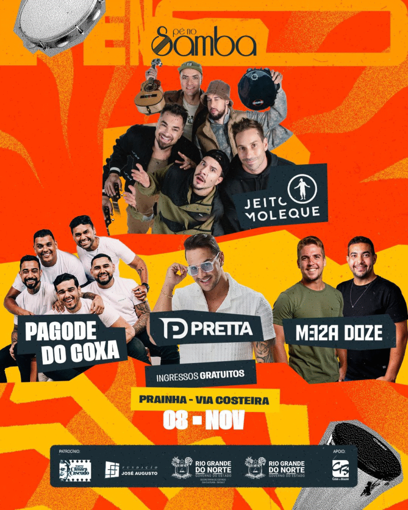 Natal vai entrar no ritmo do samba! No próximo dia 8 de novembro, a Prainha Via Costeira será o cenário do Pé no Samba, evento que promete reunir alegria, música e boas vibrações em um dos cartões-postais mais belos da cidade. A programação começa às 15h e segue até a madrugada do dia 9 de […]