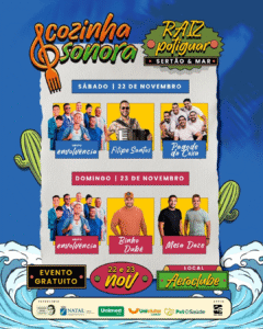 Cotidiano Cozinha Sonora acontece neste fim de semana no Aeroclube de Natal com entrada gratuita Continue lendo » 18 de novembro de 2025