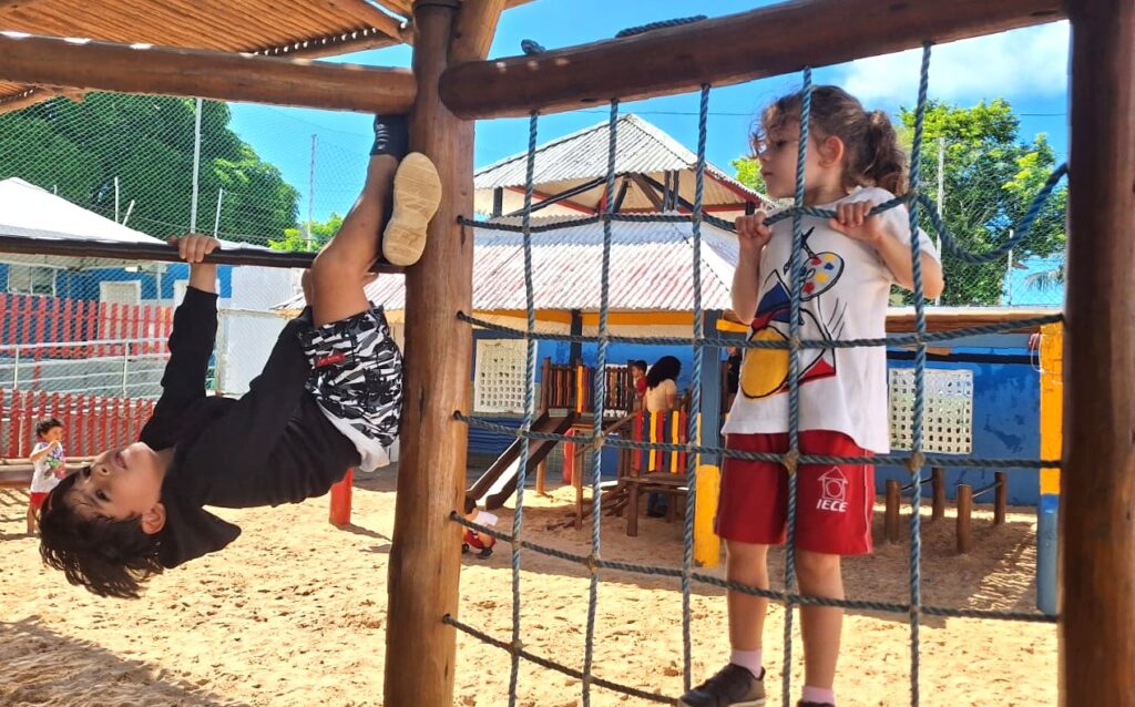 A educadora, que também teve formação em Educação Física, explica como os exercícios físicos são incorporados ao currículo escolar. “Realizamos atividades que vão além do convencional papel e lápis, incluindo o contato com a água, a areia e o barro. Nossas salas de aula são projetadas para permitir movimento, alternando atividade física e brincadeiras. Isso cria um ambiente dinâmico e interativo em que a educação promove bem estar e se concretiza de forma lúdica,” conclui Priscila Griner.