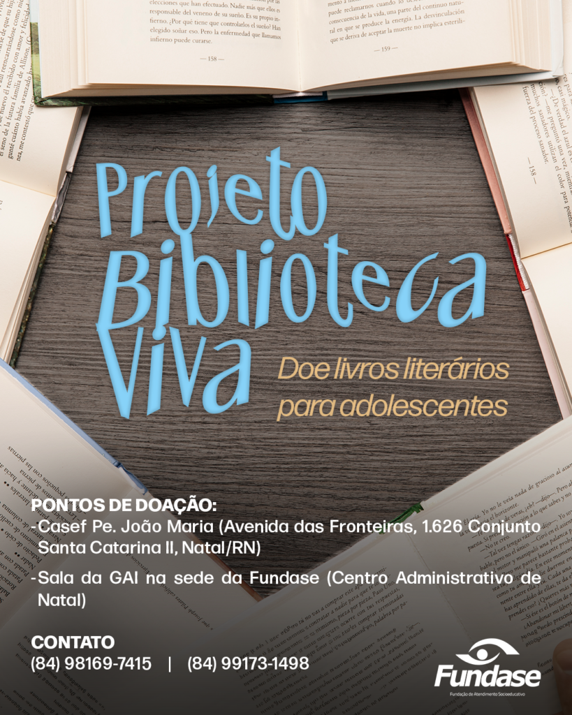 A Fundação de Atendimento Socioeducativo do Rio Grande do Norte (Fundase) iniciou campanha de arrecadação de livros literários para compor o acervo de um espaço de leitura com recursos audiovisuais no Centro de Atendimento Socioeducativo de Internação Feminina – Casef Padre João Maria, unidade da região metropolitana de Natal.